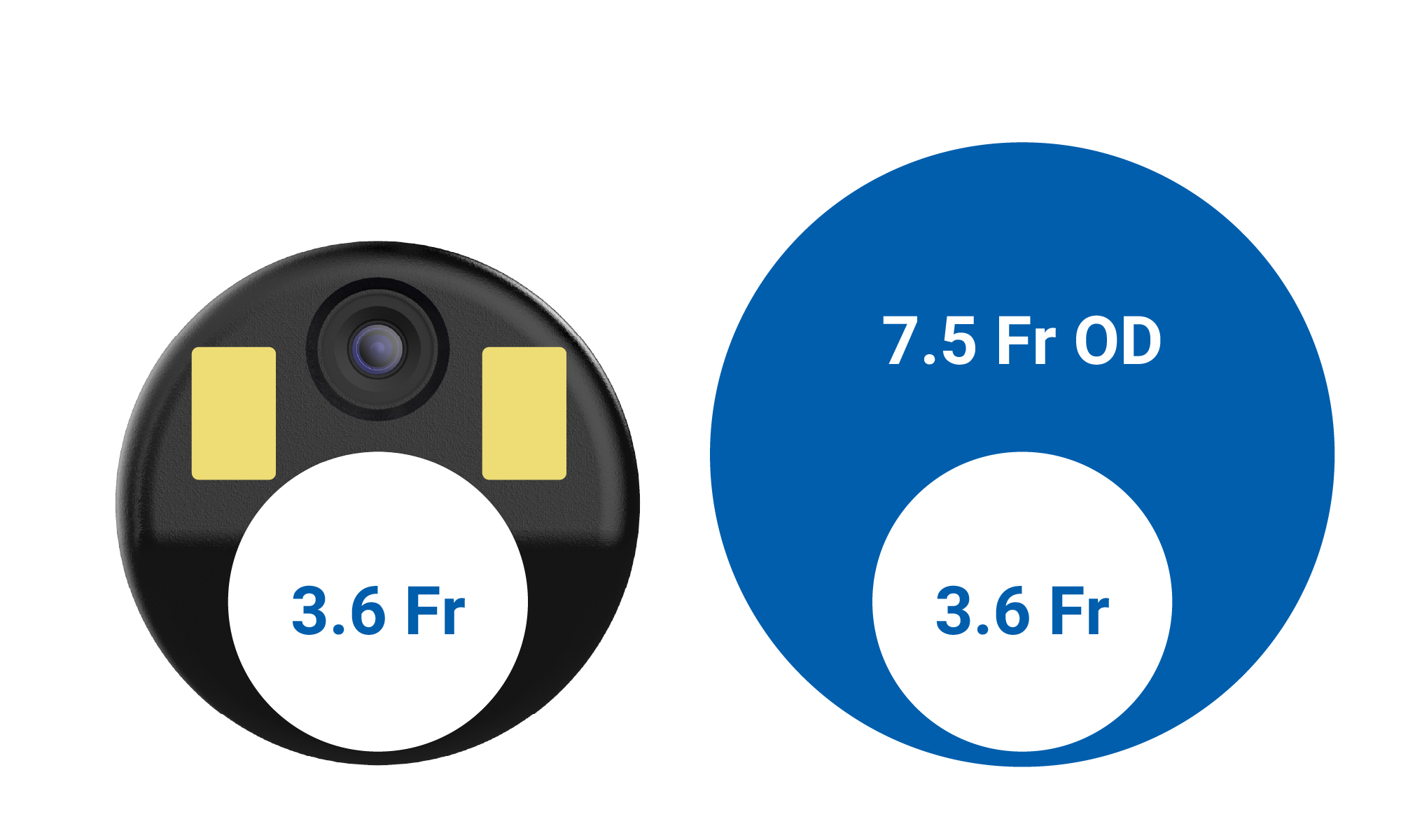 La nouvelle pointe conique ne mesure que 3,8 Fr., permettant ainsi un accès particulièrement atraumatique et facilitant la progression, même dans les structures anatomiques étroites.