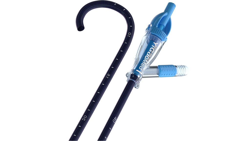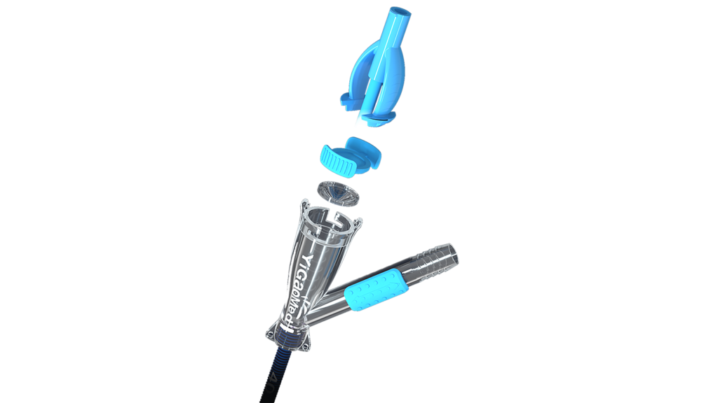 Effektive und effiziente Behandlung von Harnsteinen mittels Unterdruck-Aspiration durch einen seitlichen Anschluss an der YiGao „Elephant 2” Ureter-Zugangsschleuse mit flexibler Spitze.