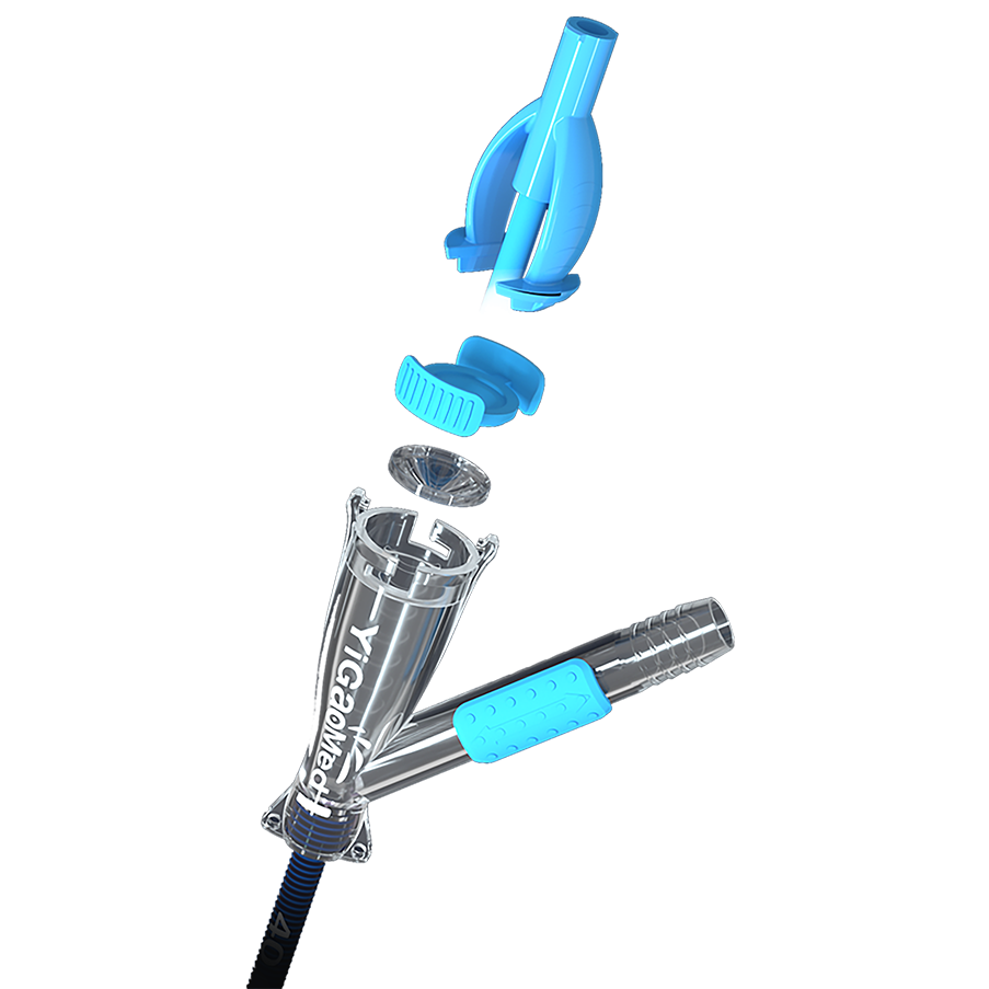 Effektive und effiziente Behandlung von Harnsteinen mittels Unterdruck-Aspiration durch einen seitlichen Anschluss an der YiGao «Elephant II» Ureter-Zugangsschleuse mit flexibler Spitze.